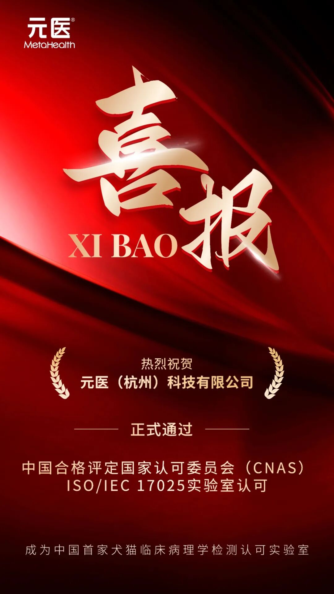 CNAS认可不是终点,而是责任的新起点。元医实验室将持续秉持 “用创新医学科技,为动物带来与人类同等的生命健康关怀” 的使命,以 “求是、精进、创新、共赢” 为核心价值观,推动中国宠物医学检测走向更精准、更可靠、更国际化的未来。